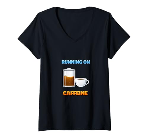 Women's Running On Caffeine Funny Coffee Humor V-Neck T-Shirt