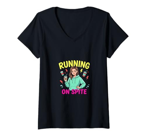 Women's Running on Spite Funny Motivation Character Design V-Neck T-Shirt
