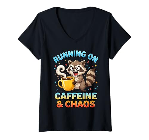 Women's Running on Caffeine and Chaos for Coffee Lovers V-Neck T-Shirt