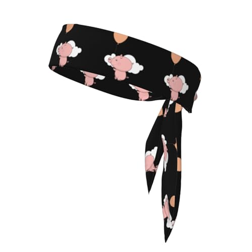 BROLEO Pig Holding Balloon on The Cloud Printing Sports Headscarf, Casual Headband, Elastic, Sweat Absorbing, Adjustable, Anti Slip