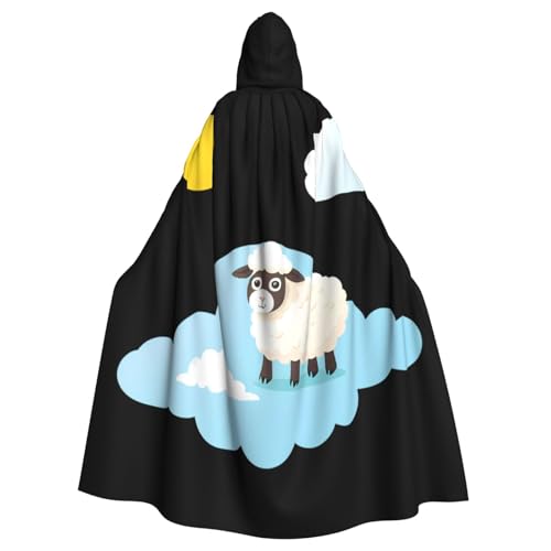 WHJSHOP Little sheep on the cloud Prints Adult Hooded Cape Cloak for Halloween, Role-Playing, and Costume Parties