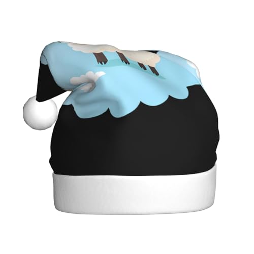 Adult plush Christmas hat WHJSHOP Little sheep on the white cloud Pattern with soft touch for Christmas party
