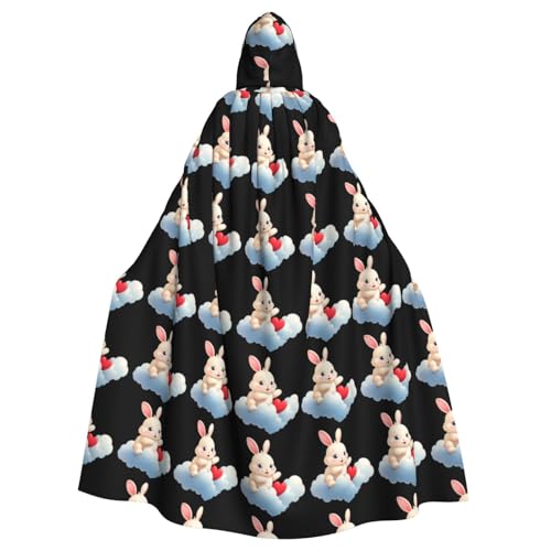 DLXW Heart-shaped rabbit on the cloud Prints Halloween Adult Hooded Cape Cloak for wear during Halloween, role-playing