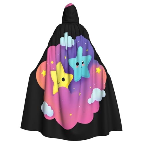 WAFICAC Halloween Adult Hooded Cape Cloak Little star on the colorful cloud Printed Super Large Hooded Cloak with Bow Tie