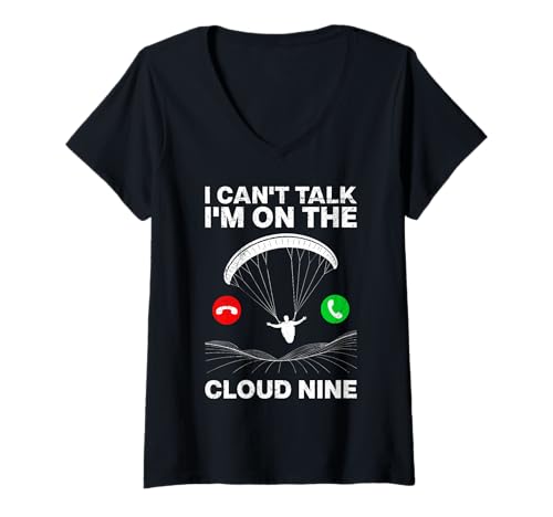 Womens Paragliding Can't Talk I'm ON The Cloud Nine Funny Paragli V-Neck T-Shirt