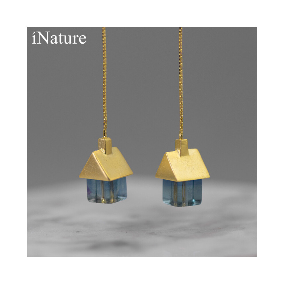 Natural Fluorite House on the Cloud Drop Earrings 925 Sterling Silver Long Tassel Earring Fine Jewelry for Women