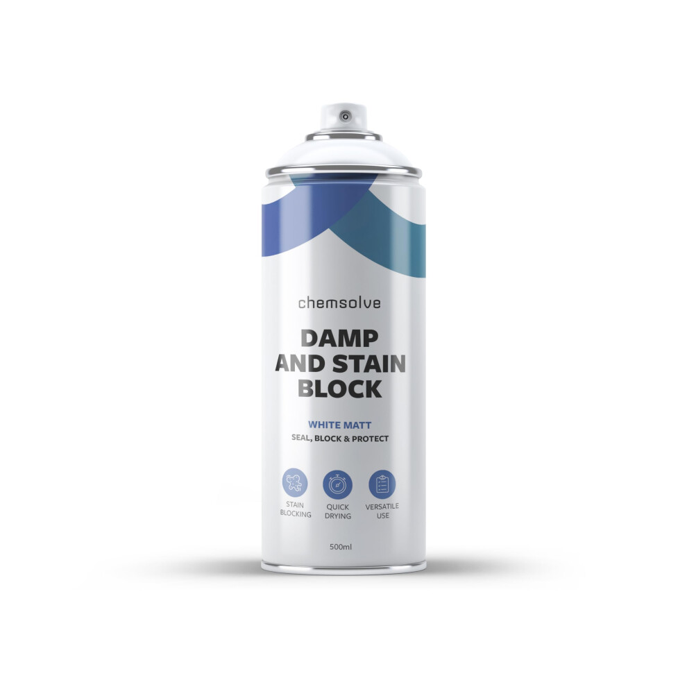 500ml x 1 / Chemsolve Ltd/Damp and Stain Block Spray Paint/One Coat/Damp Proof Paint/Block Stains for Stone, Brick and Wood/White Matt