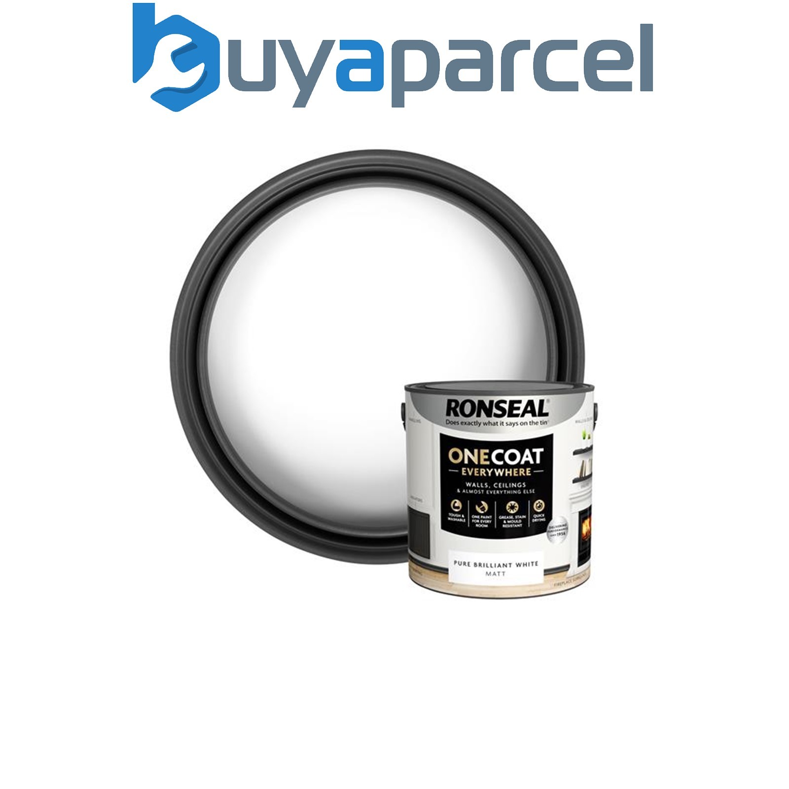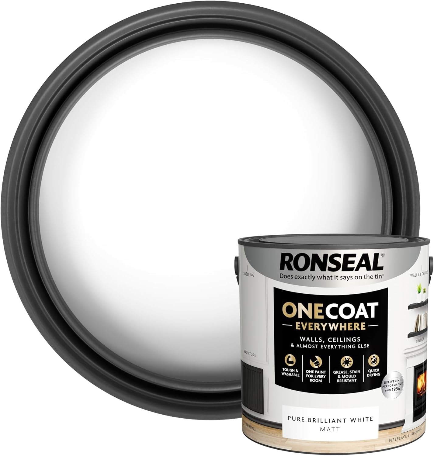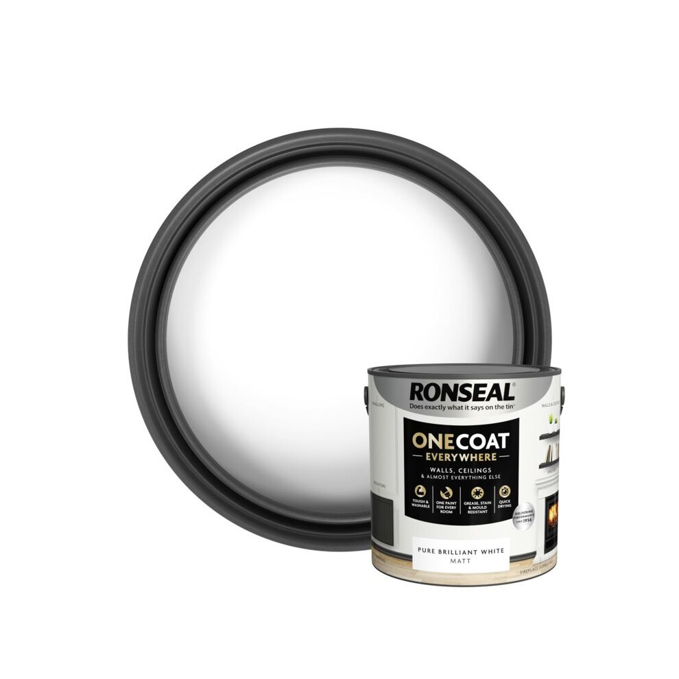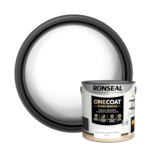Ronseal One Coat Everywhere Paint Pure Brilliant White Matt 2.5 L – Durable Interior Paint for Walls & Ceilings Smooth Finish Quick Coverage Ideal for Easy Home Projects