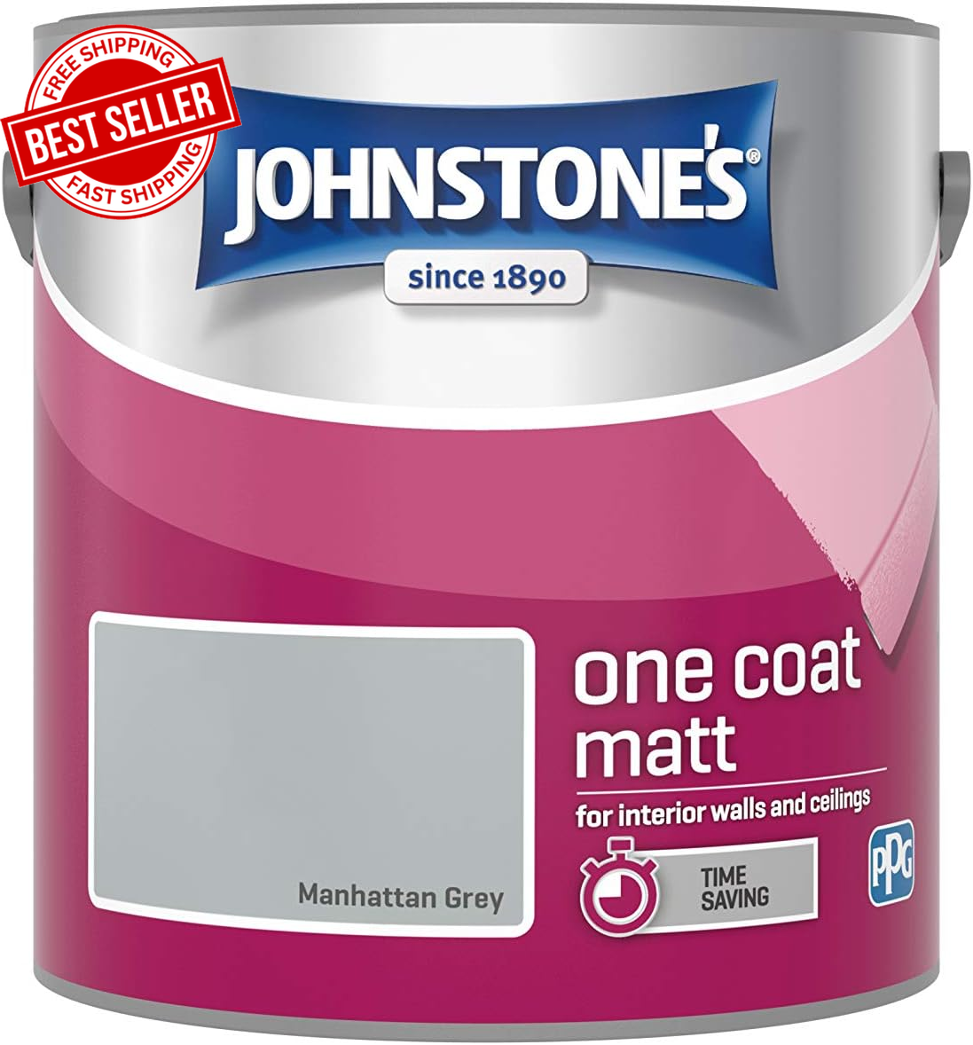 Johnstone's One Coat Matt Emulsion Paint - Manhattan Grey , 2.5L , 389522