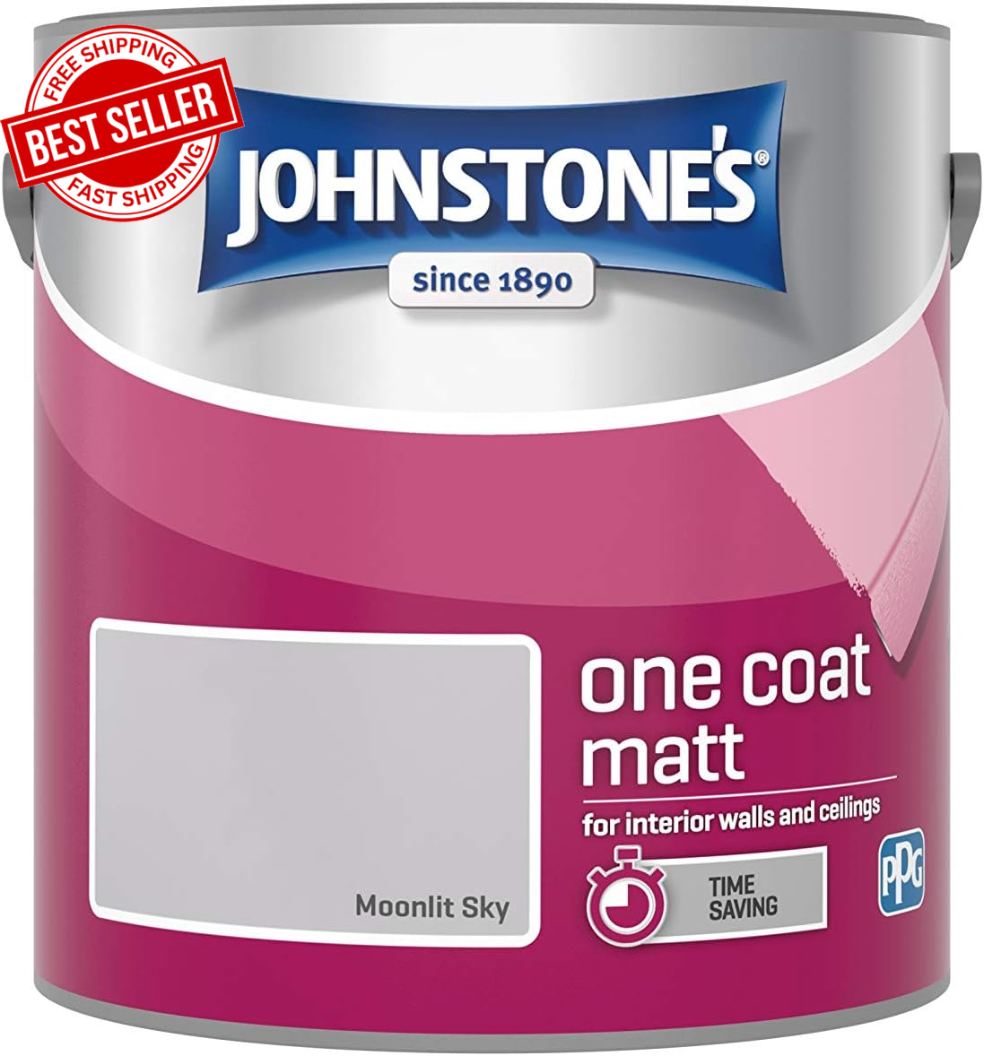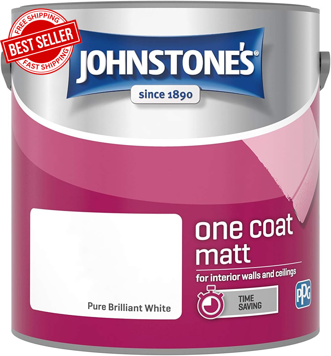 Johnstone's One Coat Matt Emulsion Paint - 2.5 l (Pack of 1), Brilliant White