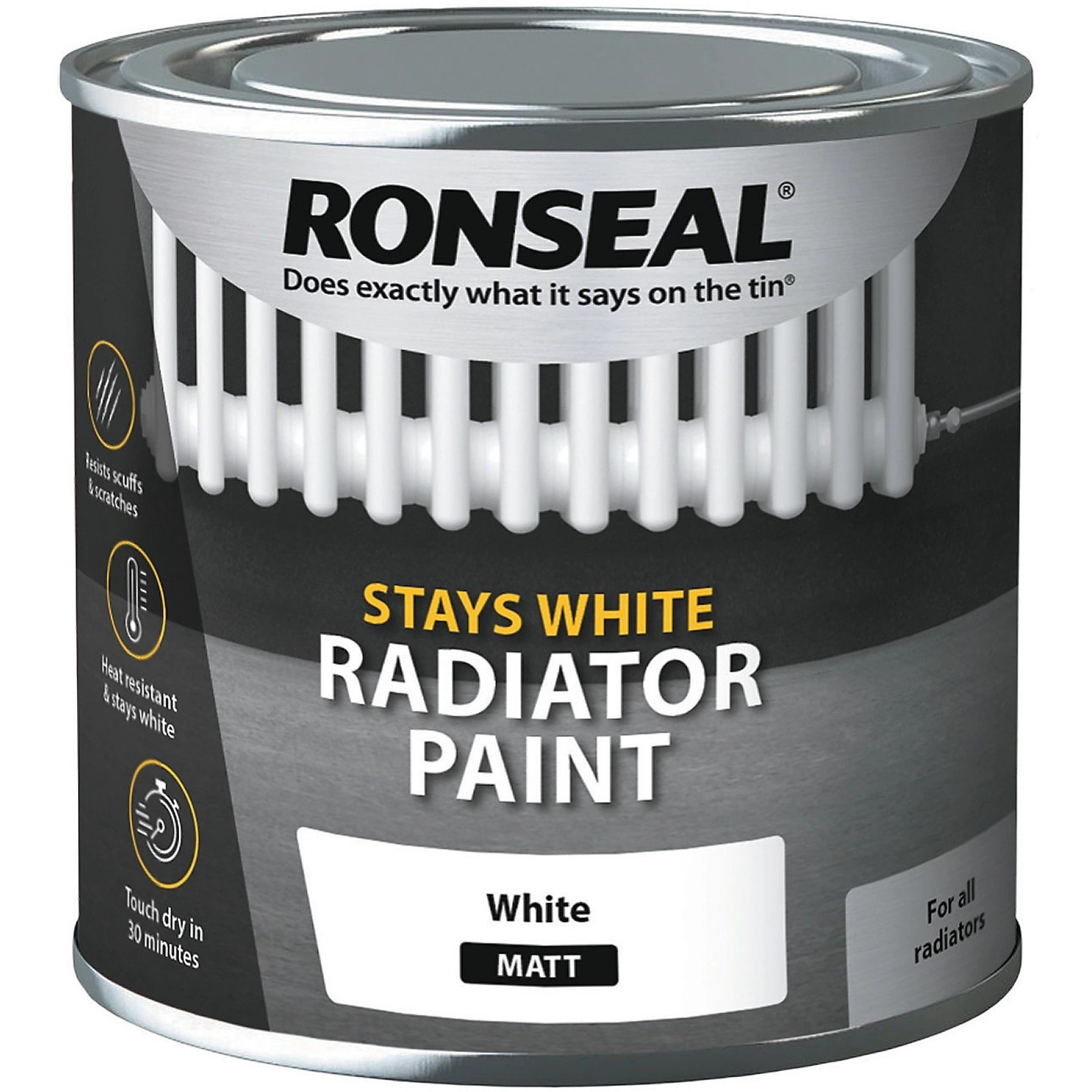 Ronseal Radiator Paint Matt 250ml Stay White One Coat Heat Resistant Enamel