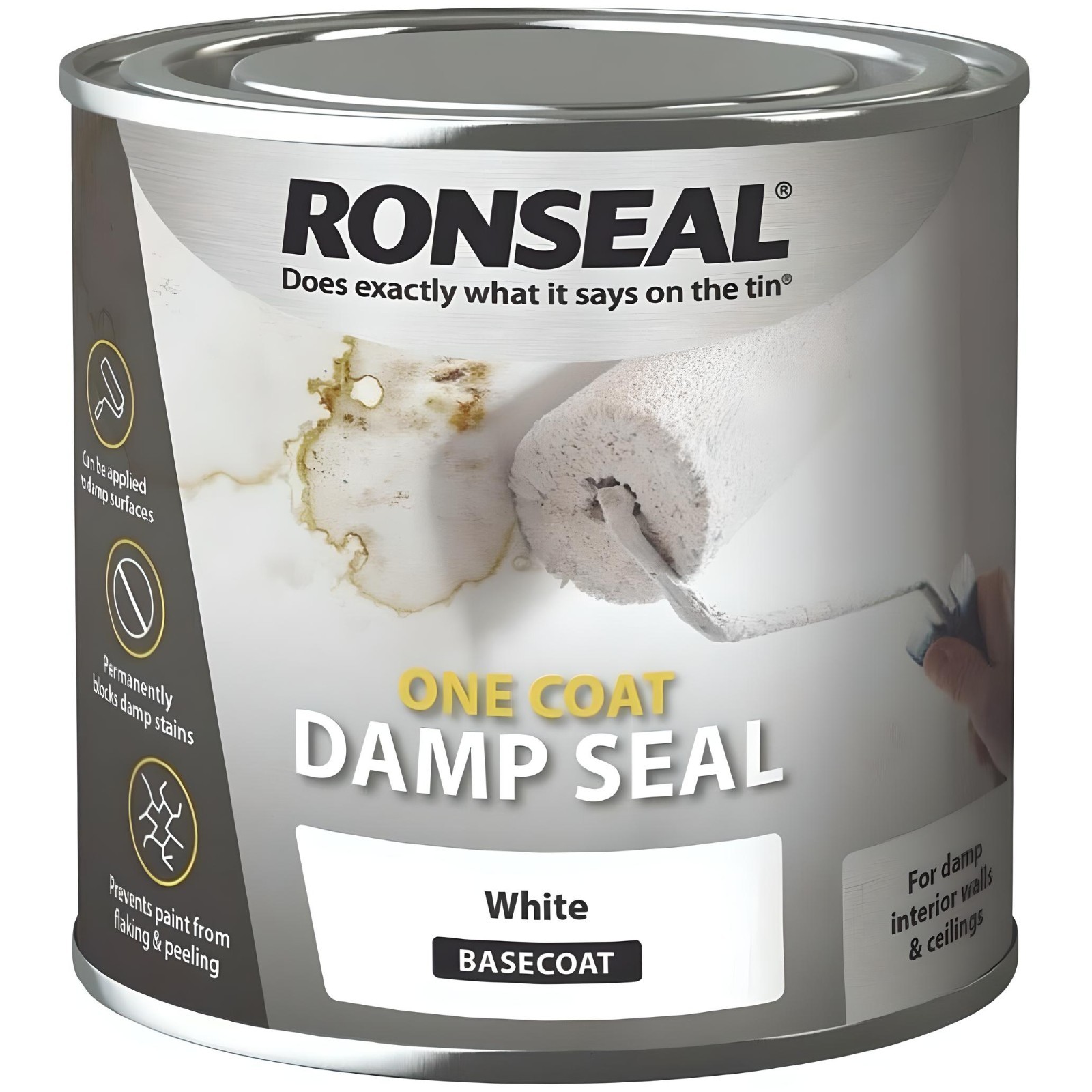 Ronseal 250ml One Coat Damp Seal White Paint Anti Stain Primer Walls Ceiling Fix
