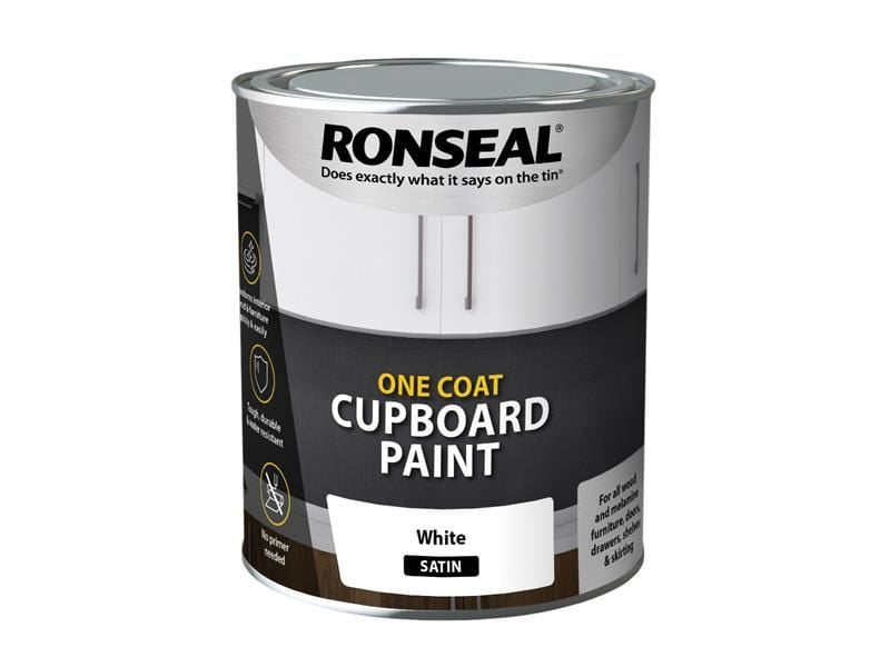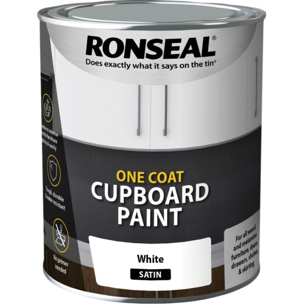 Ronseal Water Based One Coat Cupboard Paint White Satin 750ml