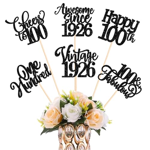 SYKYCTCY 24 Pack happy 100th Birthday Cupcake Toppers Glitter One Hundred 100 Fabulous Vintage 1926 Cupcake Picks Awesome Since 1926 Cake Decorations for 100th Birthday Anniversary Party Supplies