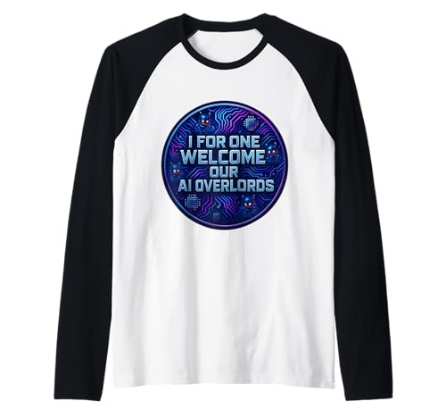 I for One Welcome Our AI Overlords Funny Sarcastic Evil Joke Raglan Baseball Tee