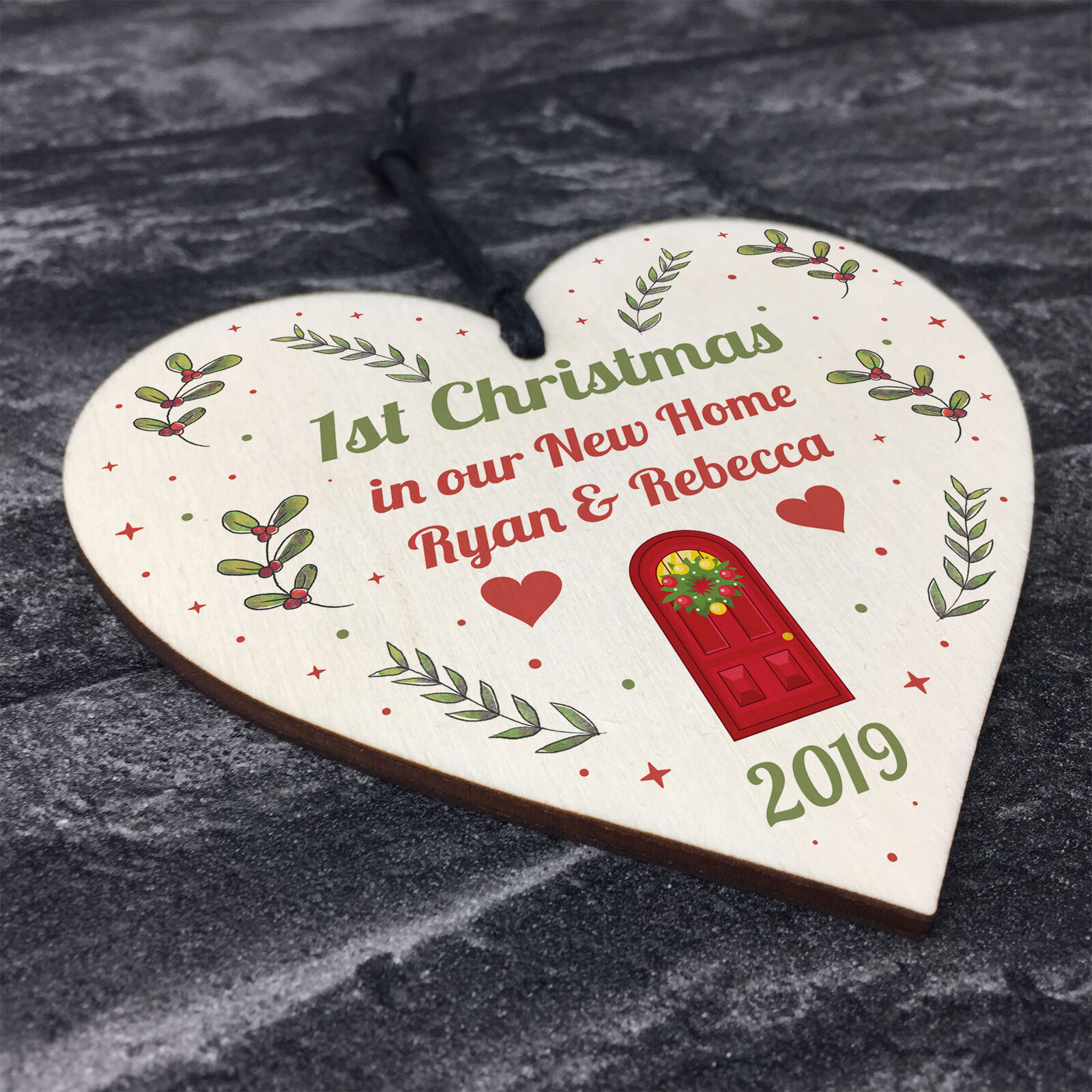 1st Christmas In Our New Home Hanging Wooden Heart Tree Decoration House Gift