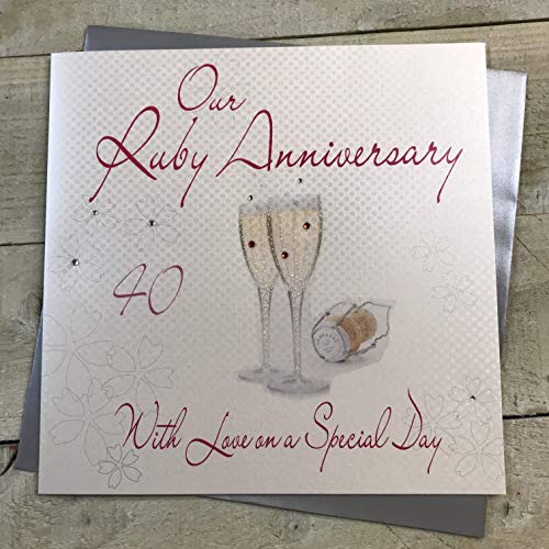 white cotton cards 1-Piece on Our Ruby Anniversary Extra-Large Handmade 40th Anniversary Card, Champagne Glasses