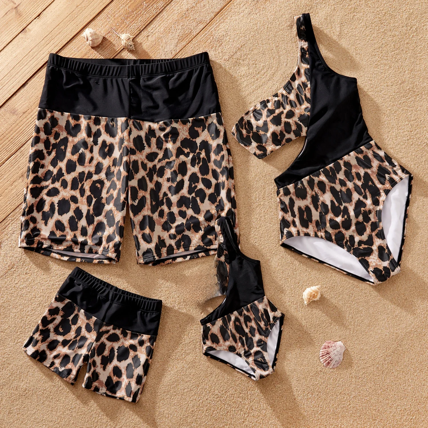 PatPat Family Matching Leopard Panel Cut Out Waist One-Shoulder One Piece Swimsuit or Swim Trunks Shorts Suitable for Summer