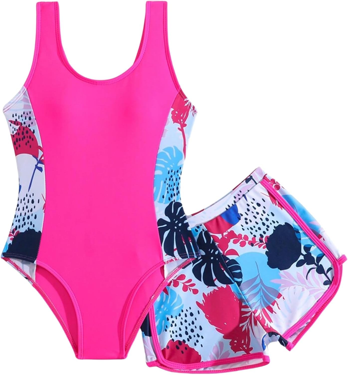 Xumplo Girls Swimming Costume Tween Girl One Piece Swimsuit with Shorts Young G