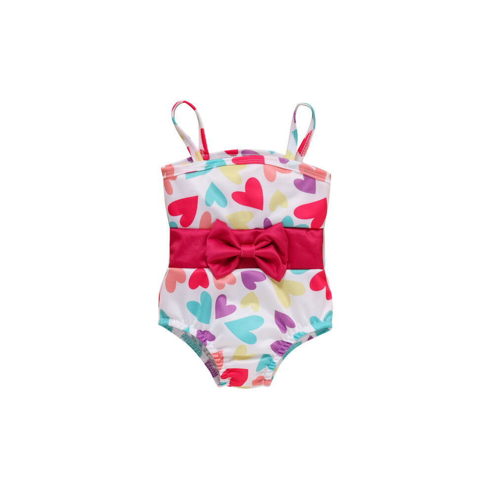 (12-18 Months, Red White One-Piece) Sister Matching Swimwear, Heart Print Bowknot One-Piece Bikini/Halter Crop Tops and Ruffles Shorts Swimsuit Set