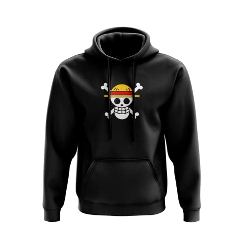 SmartyPants One Piece Skull Hoodie Pullover - Manga Anime Japanese Popular TV Show Monkey Luffy Rubber Pirates King Devil Fruit Straw Hat (Small, Black Prime)