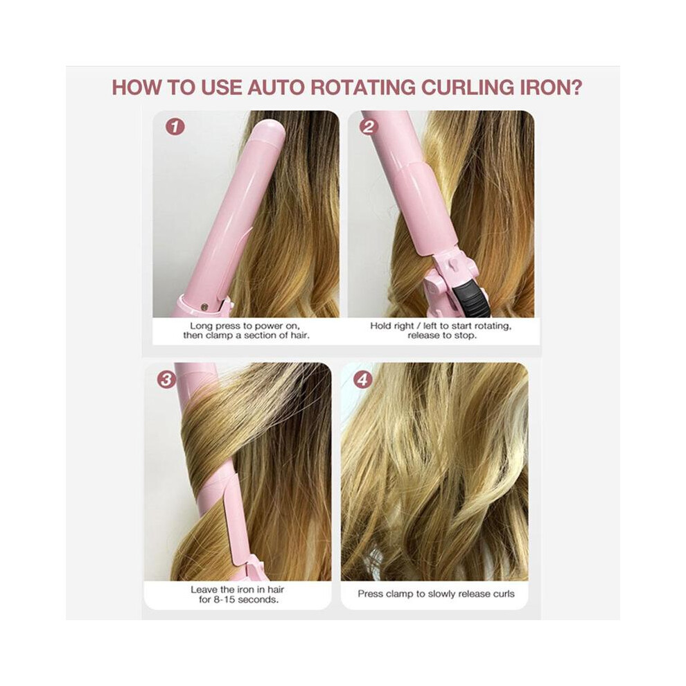 (Pink, One size) Automatic Hair Curling Iron Hair Iron With Ceramic Ionic Barrel Smart Anti-stuck Auto Rotating Hair Curling Wand With Temperature Dis