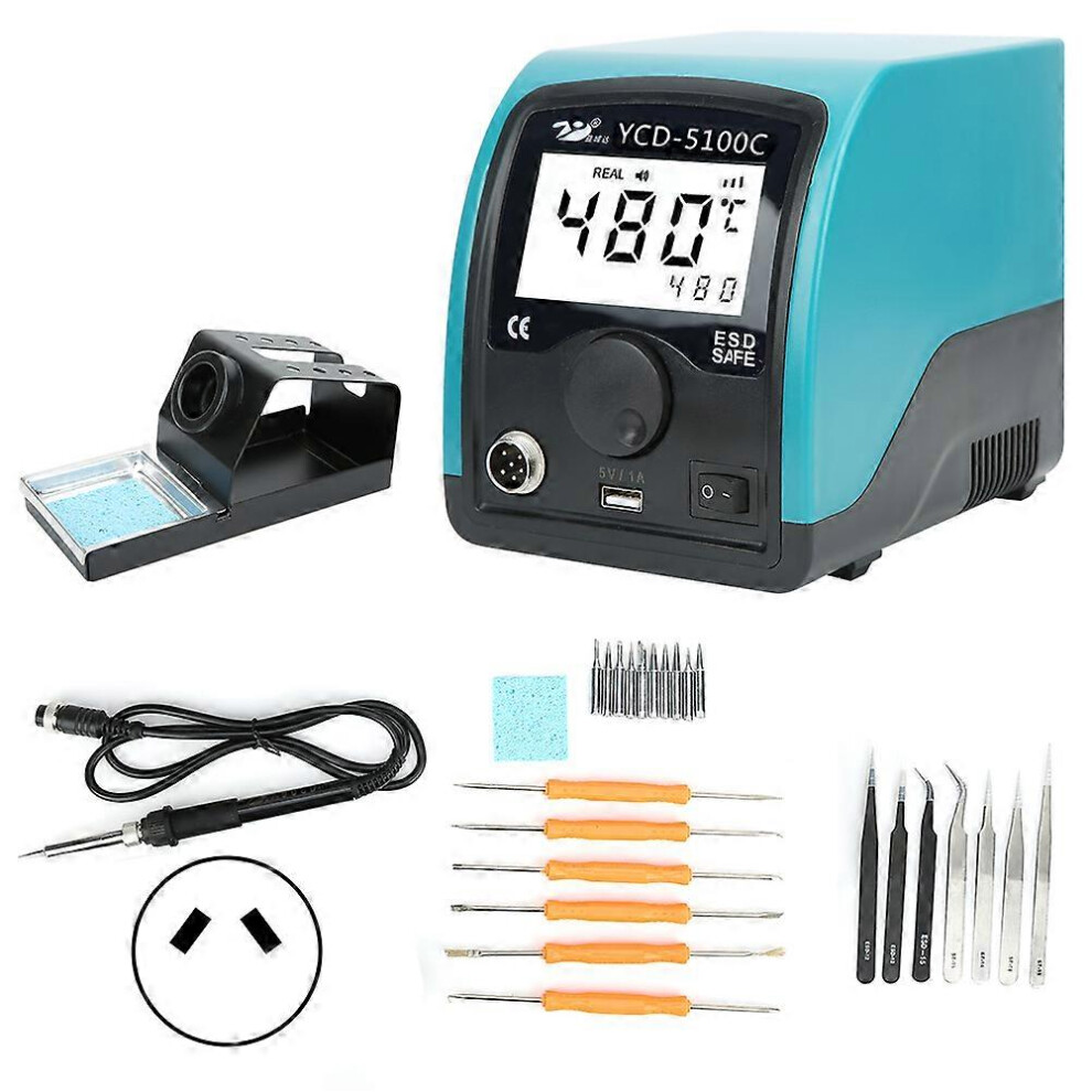 (As show, One size) LCD Display Solder Iron Station Kit Digital Temperature Adjustable Knob Control 5100C 75WAU 220V