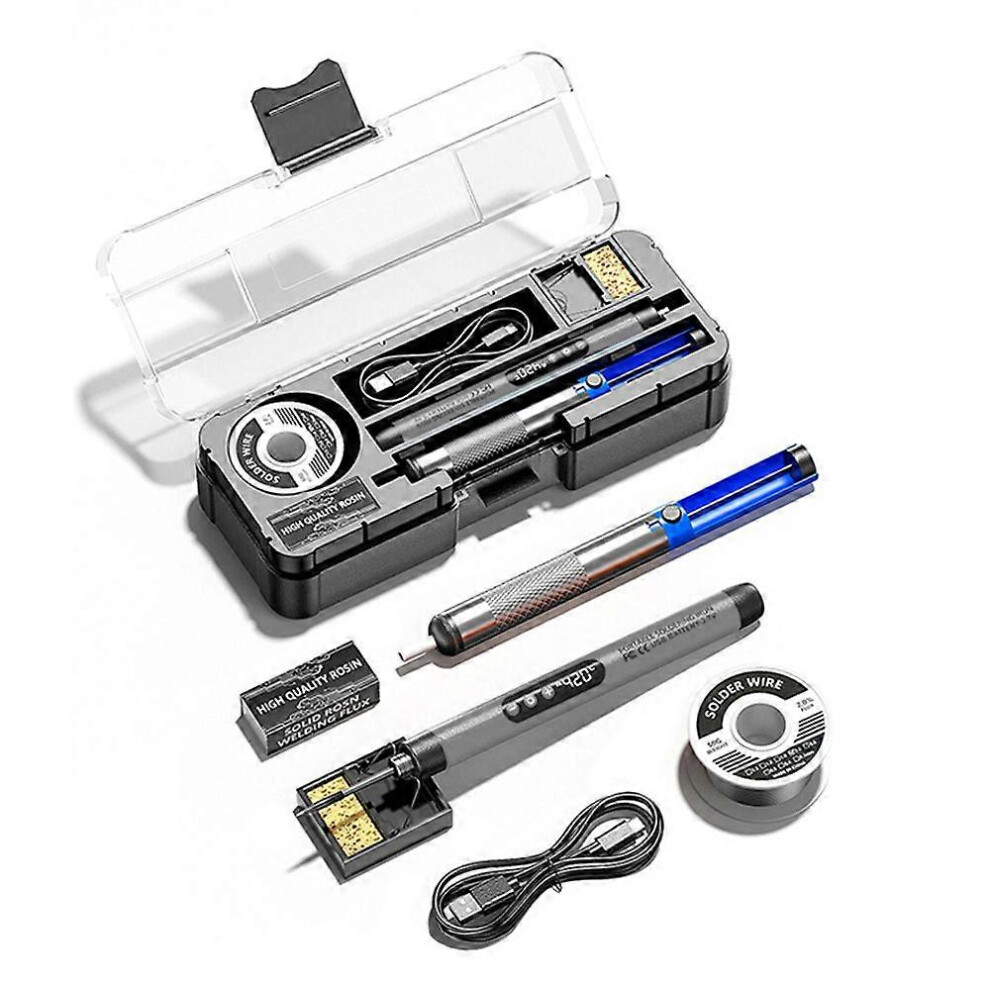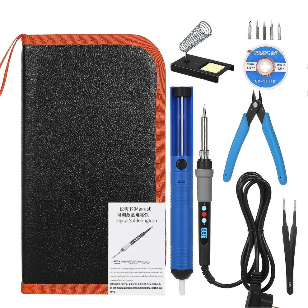 (As show, One size) Electric Soldering Iron Kit Digital Display Temperature Adjustable Fast Heating Mini Soldering Iron DC924V Grey Blue