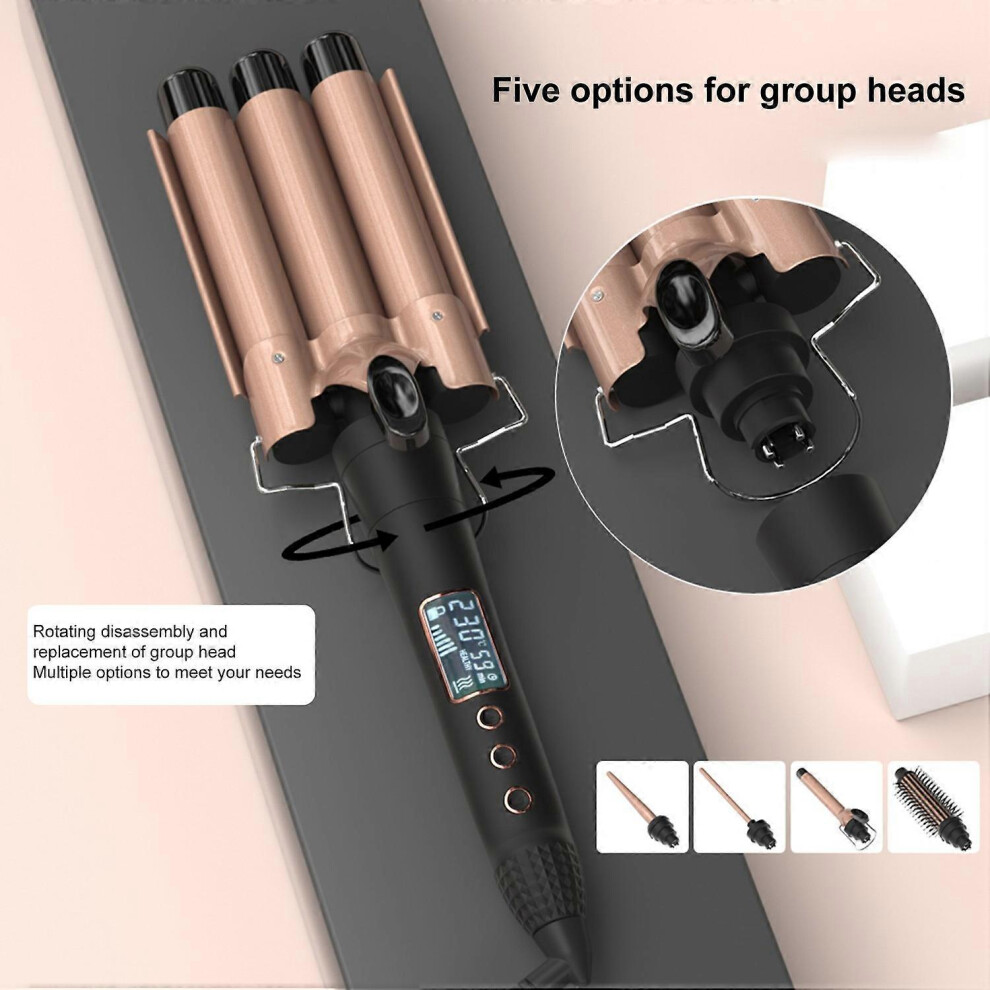 (As show, One size) 5-IN-1 Hair Curler Set Hair Curling Iron Wand Hair Straightening Brush Hair Waver Temperature Adjust