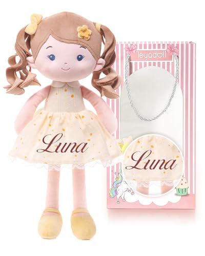 Personalized Soft Baby Doll Toys (16''), My First Baby Rag Doll for 1 Year-Old Girl Birthday Gift, Christmas Plush Toys Gift for Toddler Kids Infants-Daydream Daisy Girl-Yellow