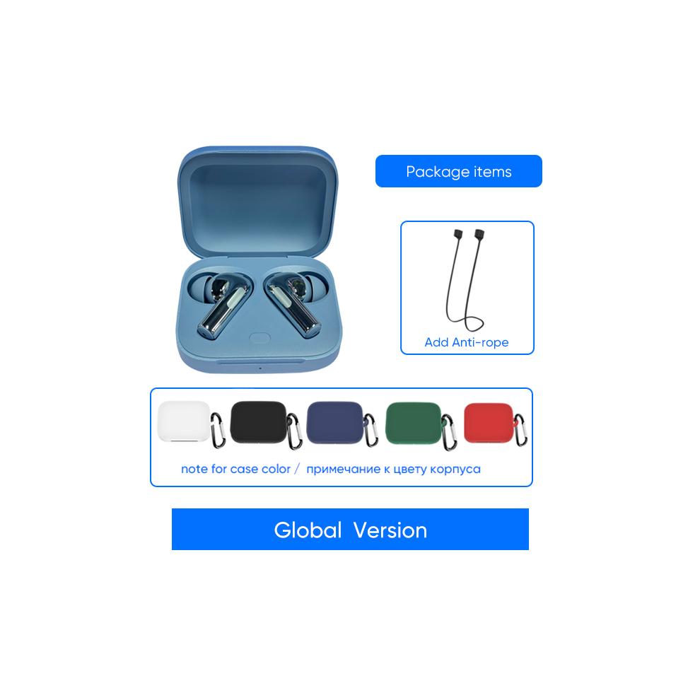 (GLBL Blue Case)2024 New Global Version Oneplus Buds 3 TWS Bluetooth Headphone 49dB Active