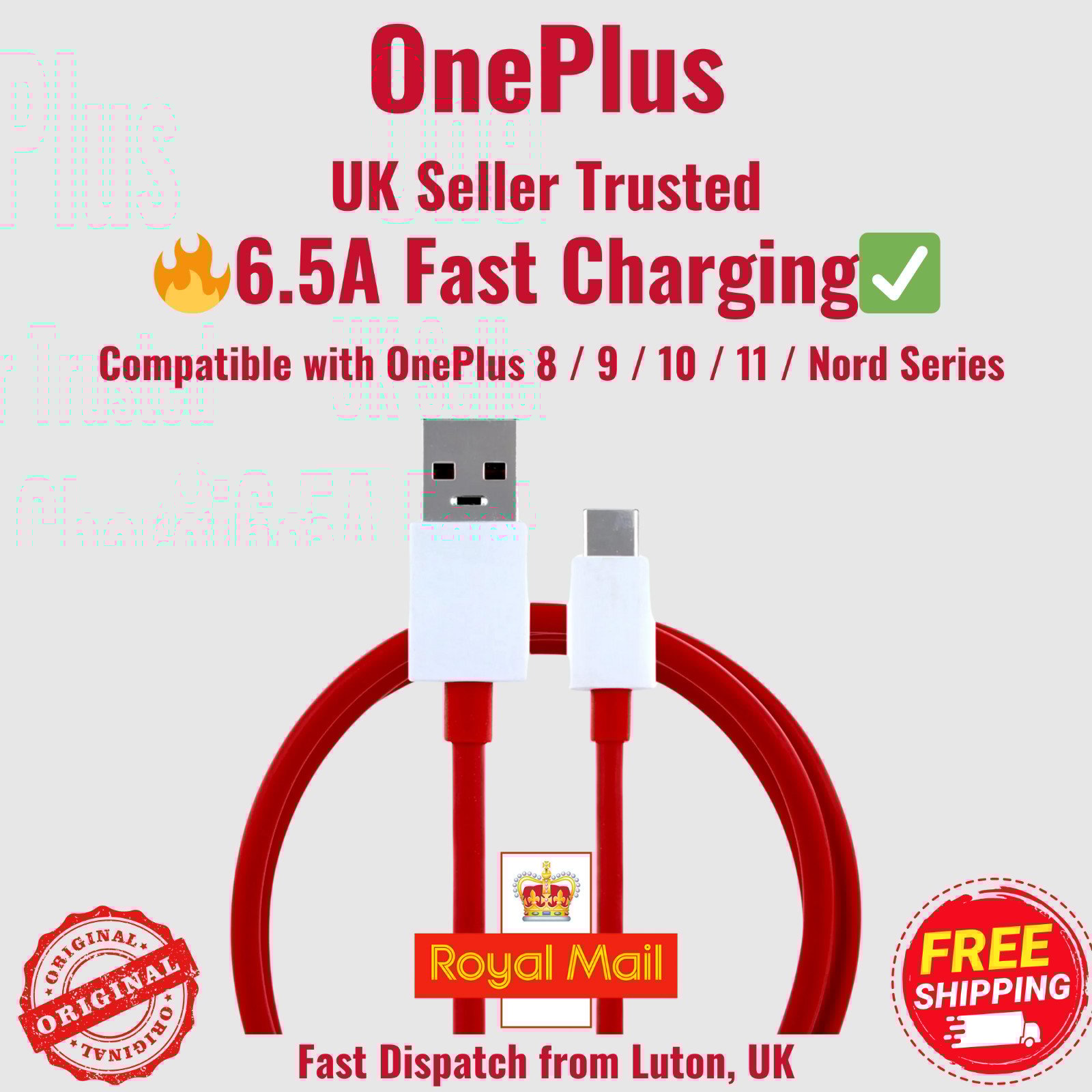 Genuine OnePlus Warp Charge 65W Cable USB-C 6.5A Fast Charging – UK Stock