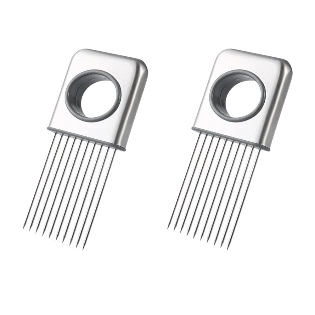 2pc Onion Slicer Stainless Steel Vegetable Holder Onion Needle Cutter kitchen...