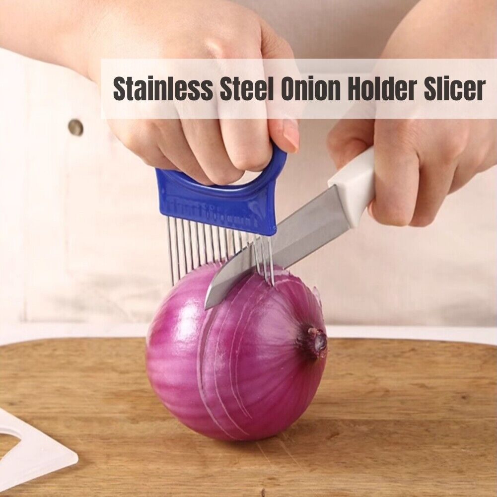 Onion Slicer Stainless Steel Vegetable Holder Onion Needle Cutter Kitchen Tools