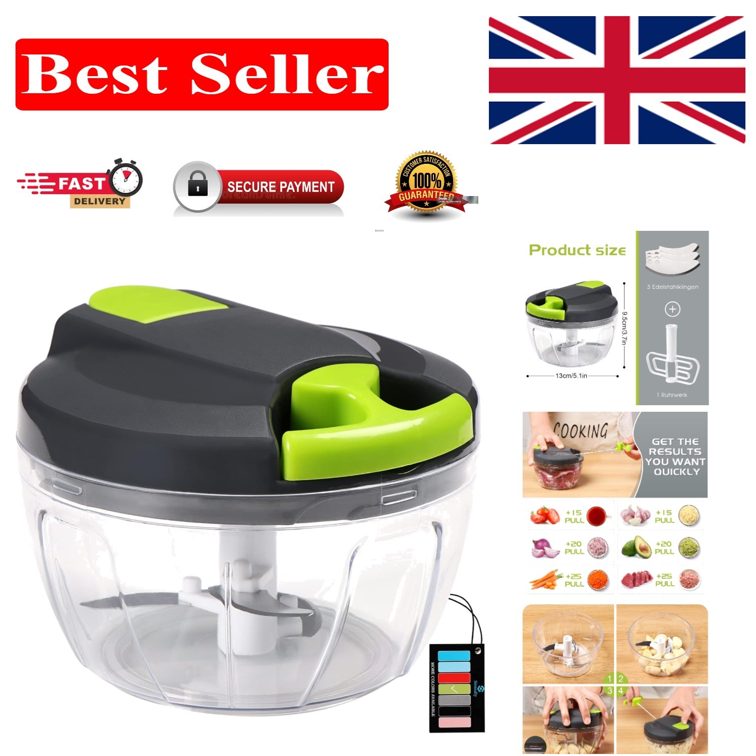 Manual Food Chopper BPA-Free, Non-Slip Onion Cutter, Dishwasher Safe, 400ml