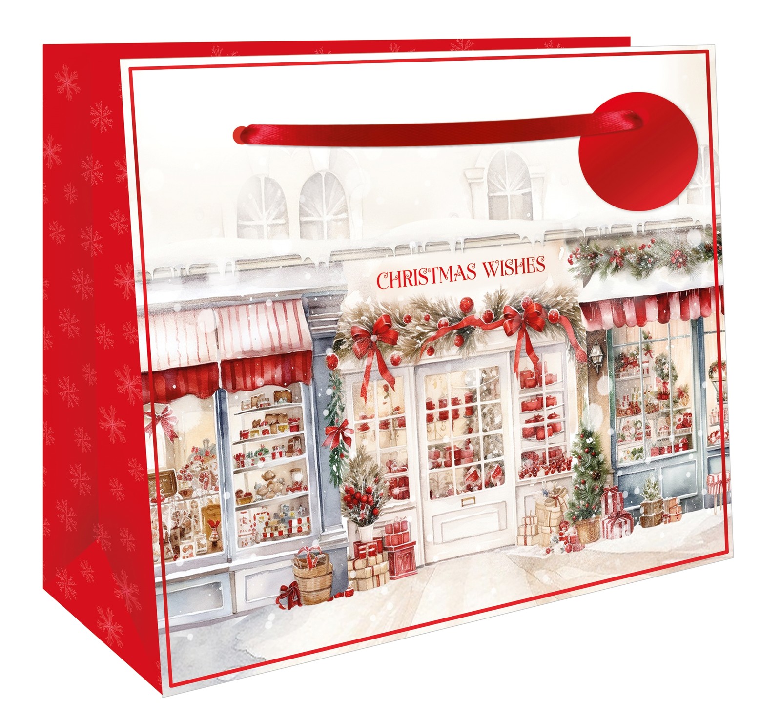 Medium Landscape Gift Bag - Vintage Shop Christmas Wishes Red Tag 10x8.5