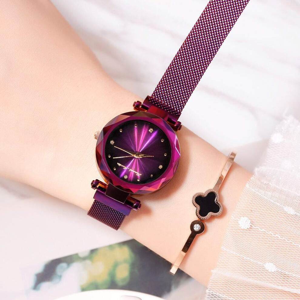 Japan Quartz Watch Women's Watches Lady Online Shopping Purple Rose Clock Adjustable Magnet Clasp Wristwatch G