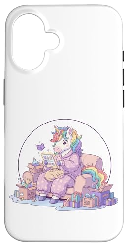 Cozy Unicorn Online Shopping Pajamas and Packages Design Case for iPhone 16