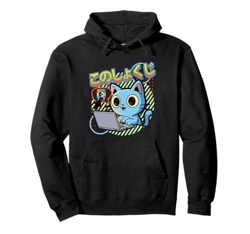 Hungry Kitty Cat Online Shopping Computer Pullover Hoodie