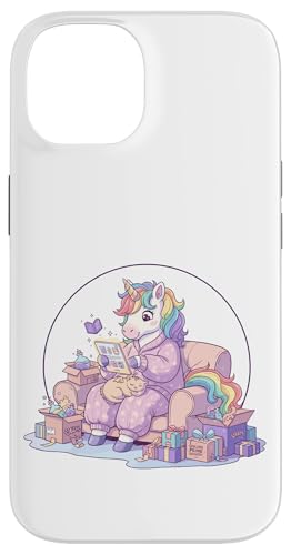 Cozy Unicorn Online Shopping Pajamas and Packages Design Case for iPhone 14
