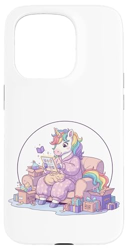 Cozy Unicorn Online Shopping Pajamas and Packages Design Case for iPhone 15 Pro
