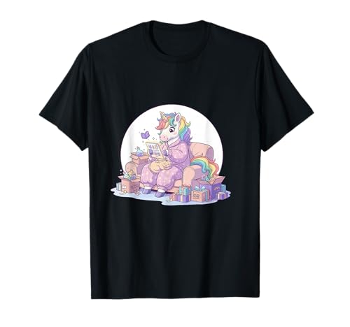 Cozy Unicorn Online Shopping Pajamas and Packages Design T-Shirt