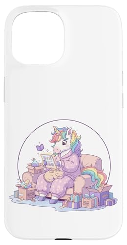 Cozy Unicorn Online Shopping Pajamas and Packages Design Case for iPhone 15