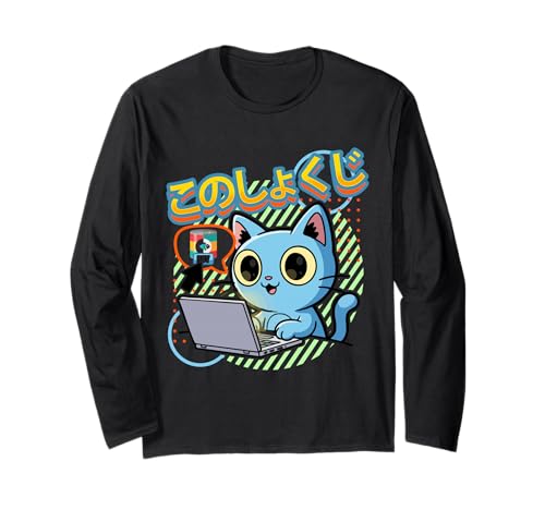 Hungry Kitty Cat Online Shopping Computer Long Sleeve T-Shirt