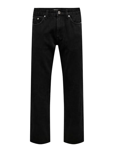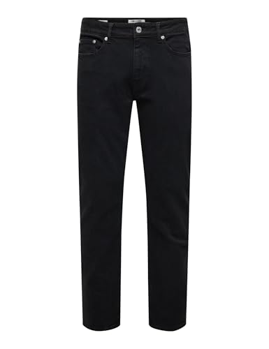 ONLY & SONS Male Normal Cut Jeans ONSEDGE Medium Waist Straight Cut Jeans, Black Denim, 31 W/32 L