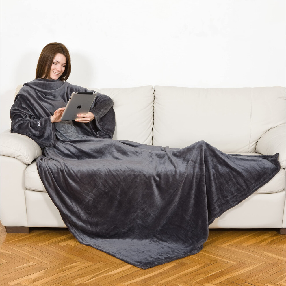 Kanguru Deluxe Loft, fluffy blanket, fleece blankets for adults, blanket with sleeves with Kangaroo pocket, Christmas gifts, gifts for women,oodies for women, snuggle blanket, grey, 140 x 210 cm