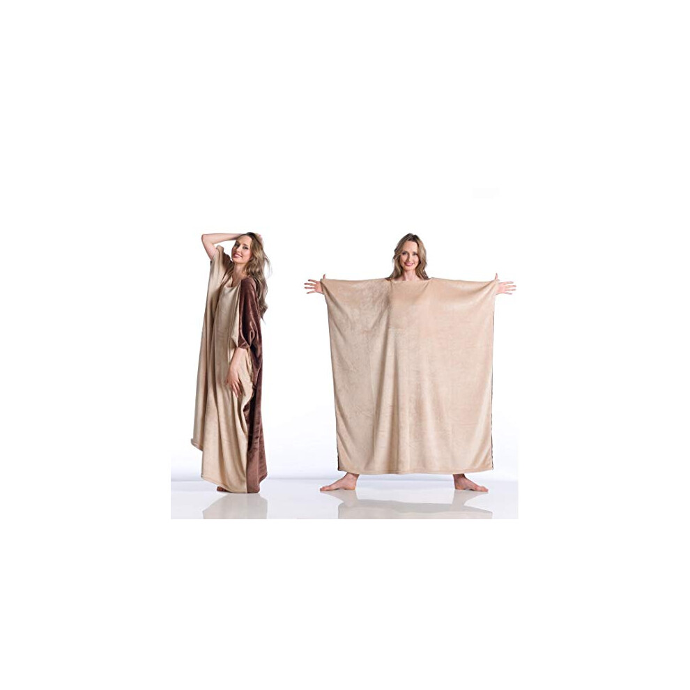 Oversized Wearable Hoodie Blanket Ultra Soft Sherpa Fleece Oodies Reversible Warm & Cozy Giant Hooded Blanket Sweatshirt Large Front Pocket - Gift One Size Fits For All (Solid Color, Beige)
