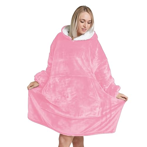 Oversized Hoodie Blanket Unisex Ultra Soft Sherpa Fleece Oodies | Pink Wearable Blanket with Hood & Pockets One Size Fits All, Warm & Cozy Loungewear for Men Women
