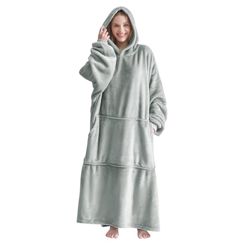 Oversized Hoodie Blanket Unisex Ultra Soft Sherpa Fleece Oodies | Light Grey Wearable Blanket with Hood & Pockets One Size Fits All, Warm & Cozy Loungewear for Men Women