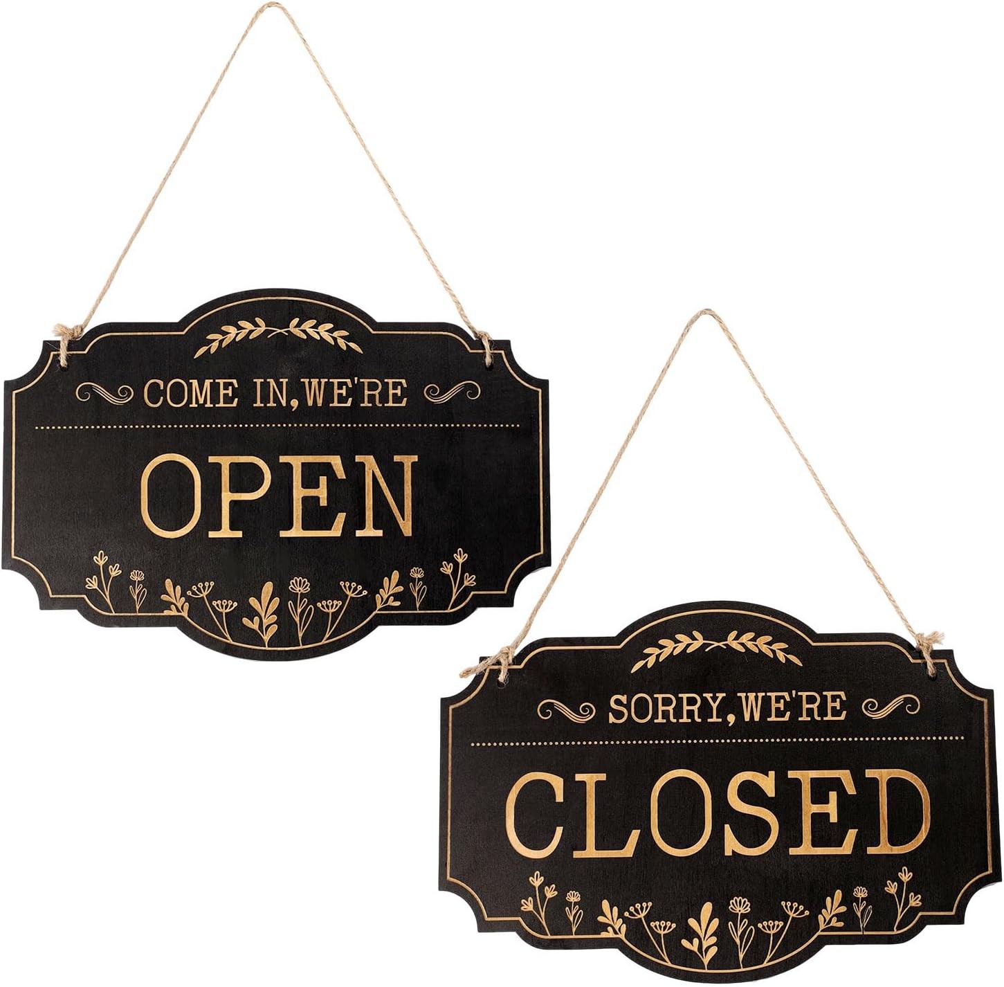 Open Signs for Business Double Sided Open Closed Sign Business Hours Hanging Sign with Rope Hours of Operation for Walls Window Shop Bar Hotel 12x8 inch